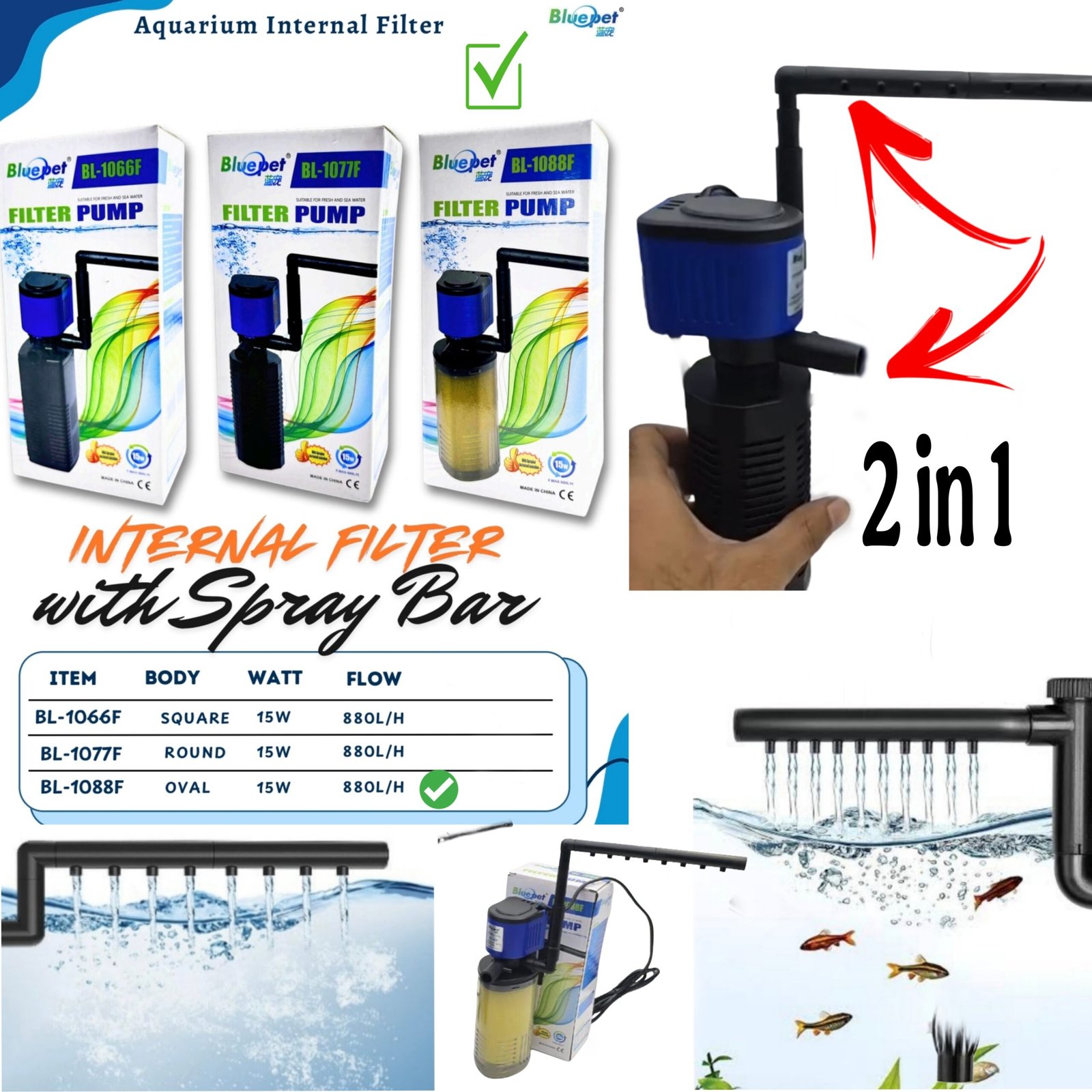 The BL 1088F is a powerful, durable, and efficient internal filter pump, perfect for medium to large aquariums. It ensures strong circulation, effective waste removal, and quiet operation, making it a dependable choice for both beginner and experienced aquarists.