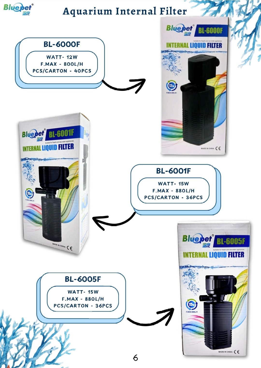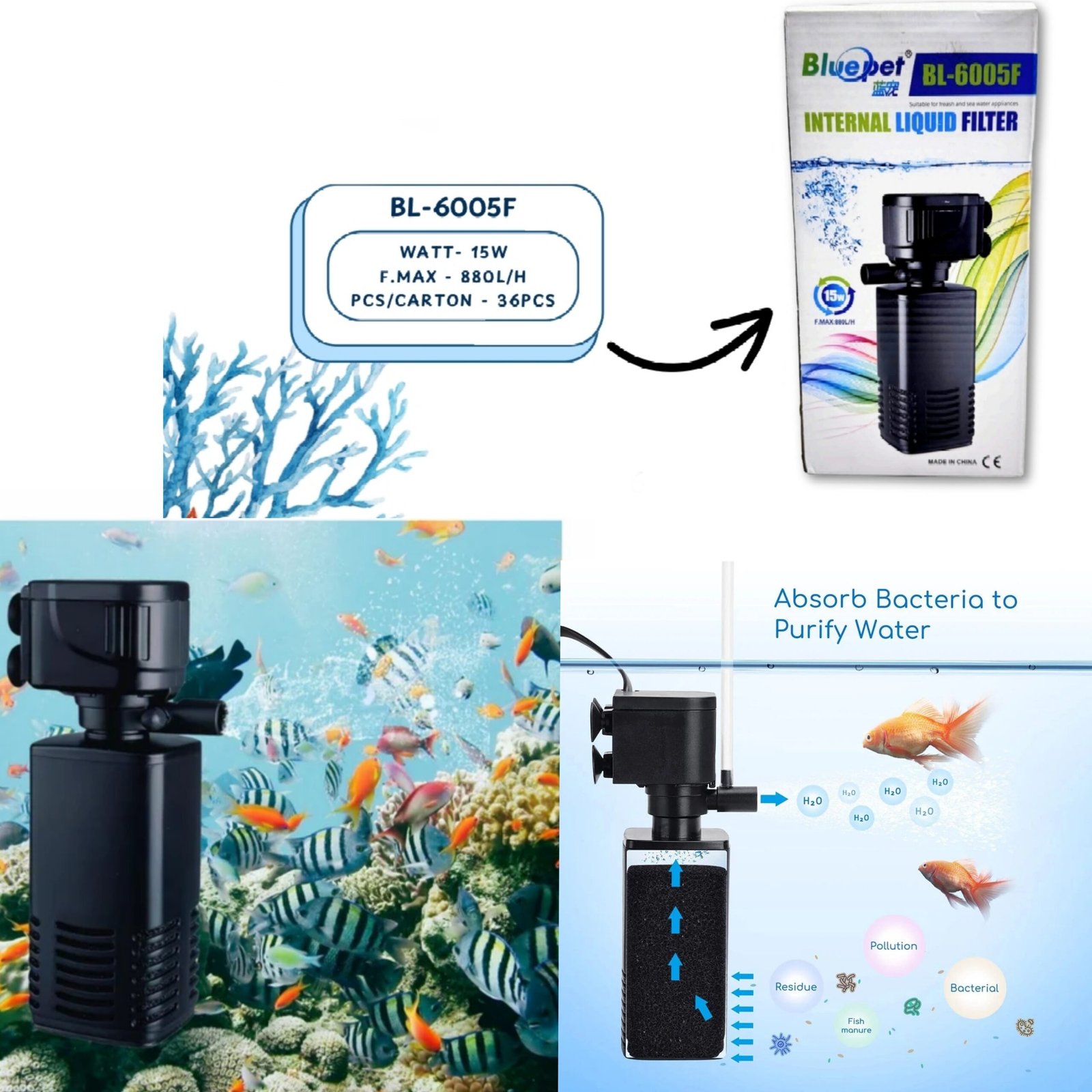 • 1 × Blue Pet BL-6005F Internal Liquid Filter