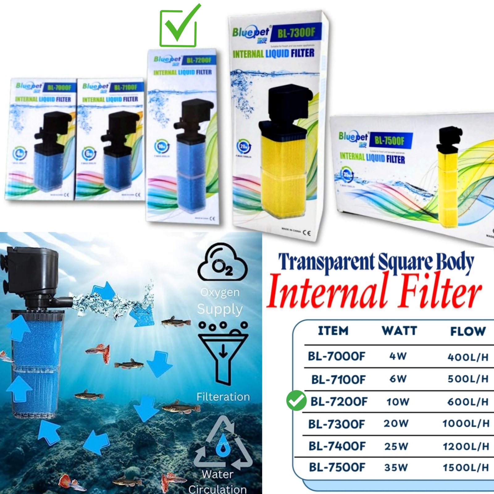 • 1 × Blue Pet BL-7200F Internal Filter