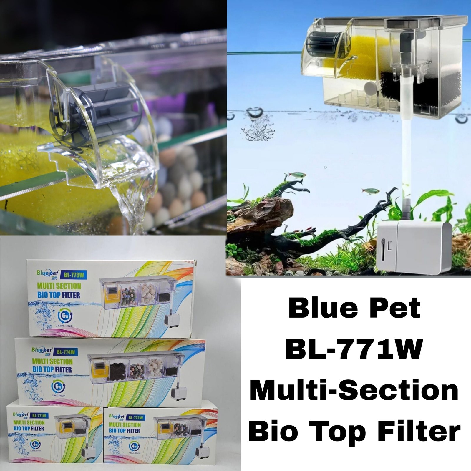 The Blue Pet BL-771W is perfect for aquarists who want a powerful and flexible filtration system. Its multi-chamber design, high water flow, and large media capacity make it ideal for large community aquariums, goldfish colonies, and monster fish tanks.