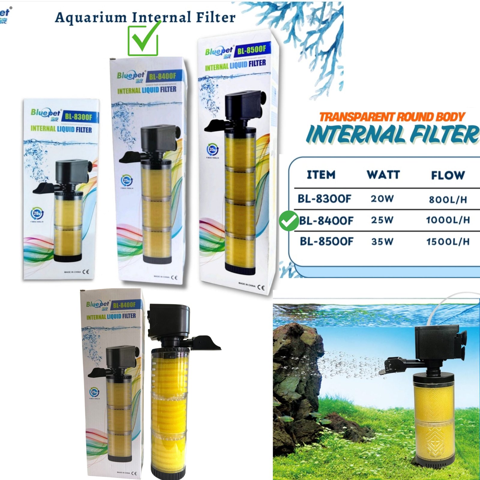 • 1 × Blue Pet BL-8400F Internal Filter