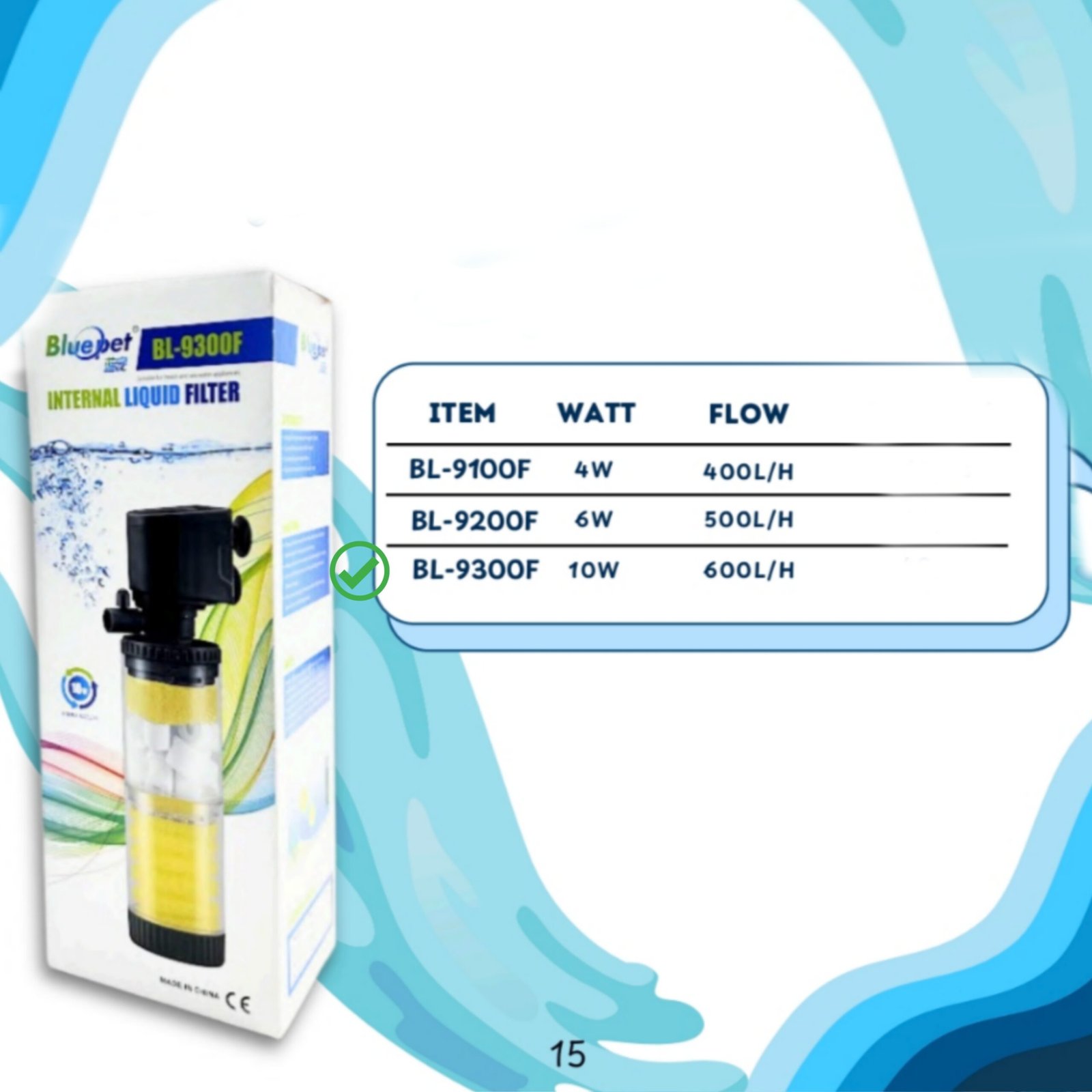 1 Γ Blue Pet BL 9300F Internal Liquid Filter