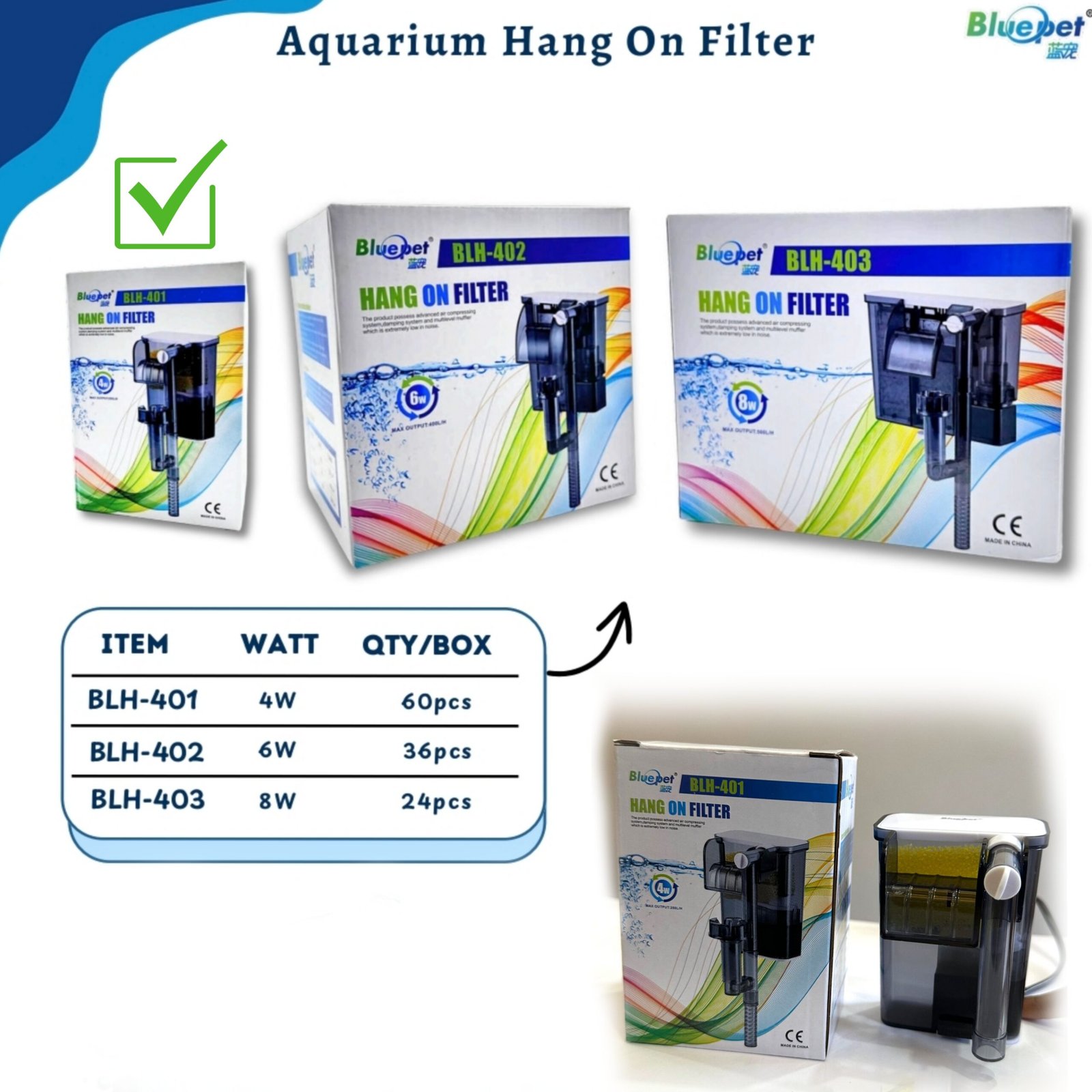 • 1 × Blue Pet BLH-401 Hang-On Filter