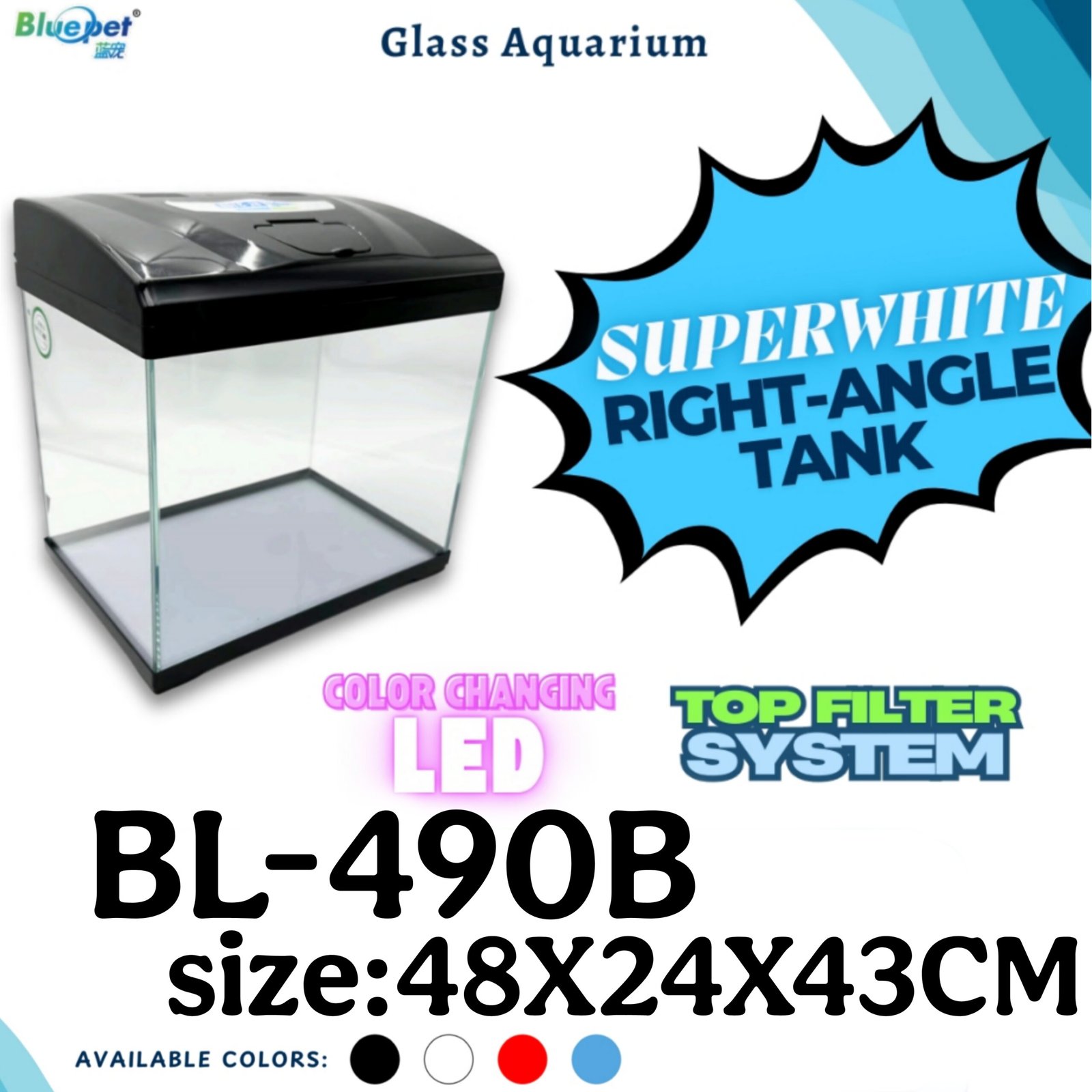 (DH) BLUEPET BL 490B Superwhite Right Angle Tank (48×24×43 CM)