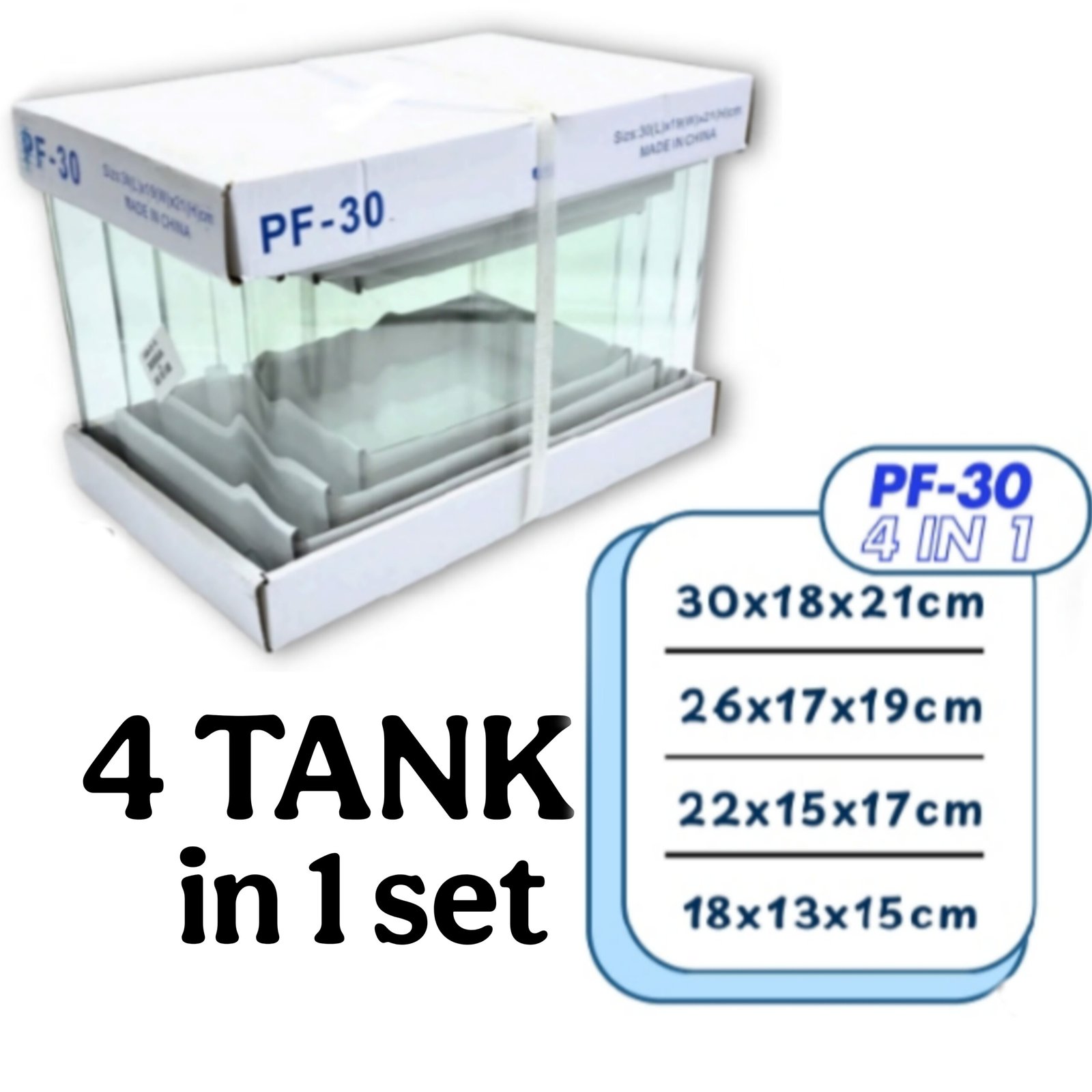 The BLUEPET PF 30 (4 in 1) Set Glass Aquarium Tank is a versatile aquarium set designed for hobbyists looking for multiple tank sizes in one package. With four high-quality glass tanks, this set is ideal for small aquascapes, breeding setups, or beginner aquarists who want flexibility and convenience.