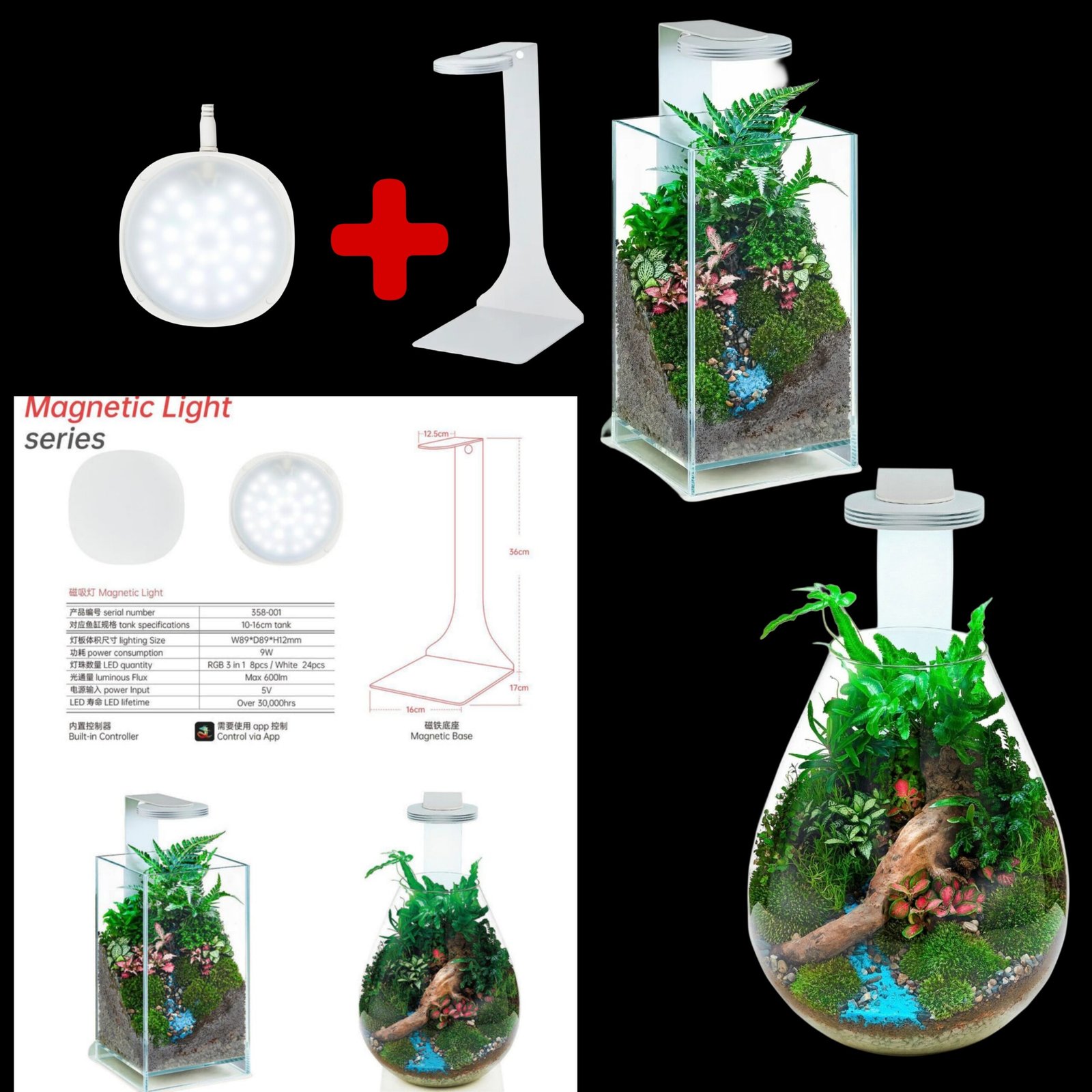 Chihiros Magnetic lamp: 3 in 1 RGB LED’s and White LED’s, APP controlled, 2 channels adjustment, 650 to 700LM. Suitable for Small Terrariums and Wabi-Kusa bowls. Suited to meet the Light requirements of medium and high light plants.