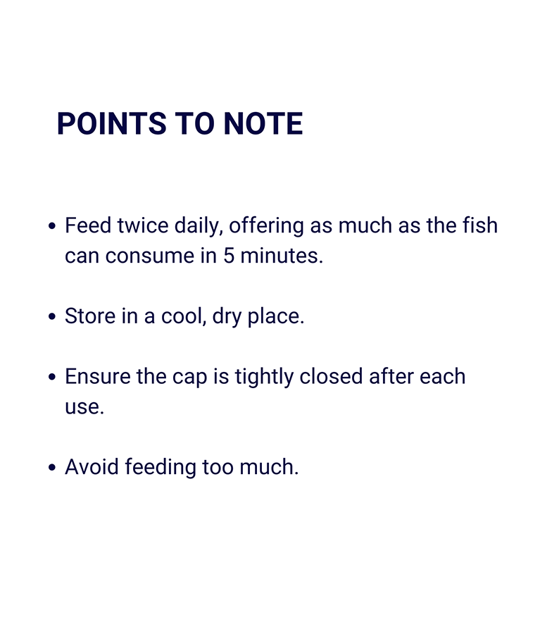 Suitable for all type of Koi fishes such as Kohaku, Showa Sanshoku, Taisho Sanshoku, Koromo, Goshiki & Etc..,