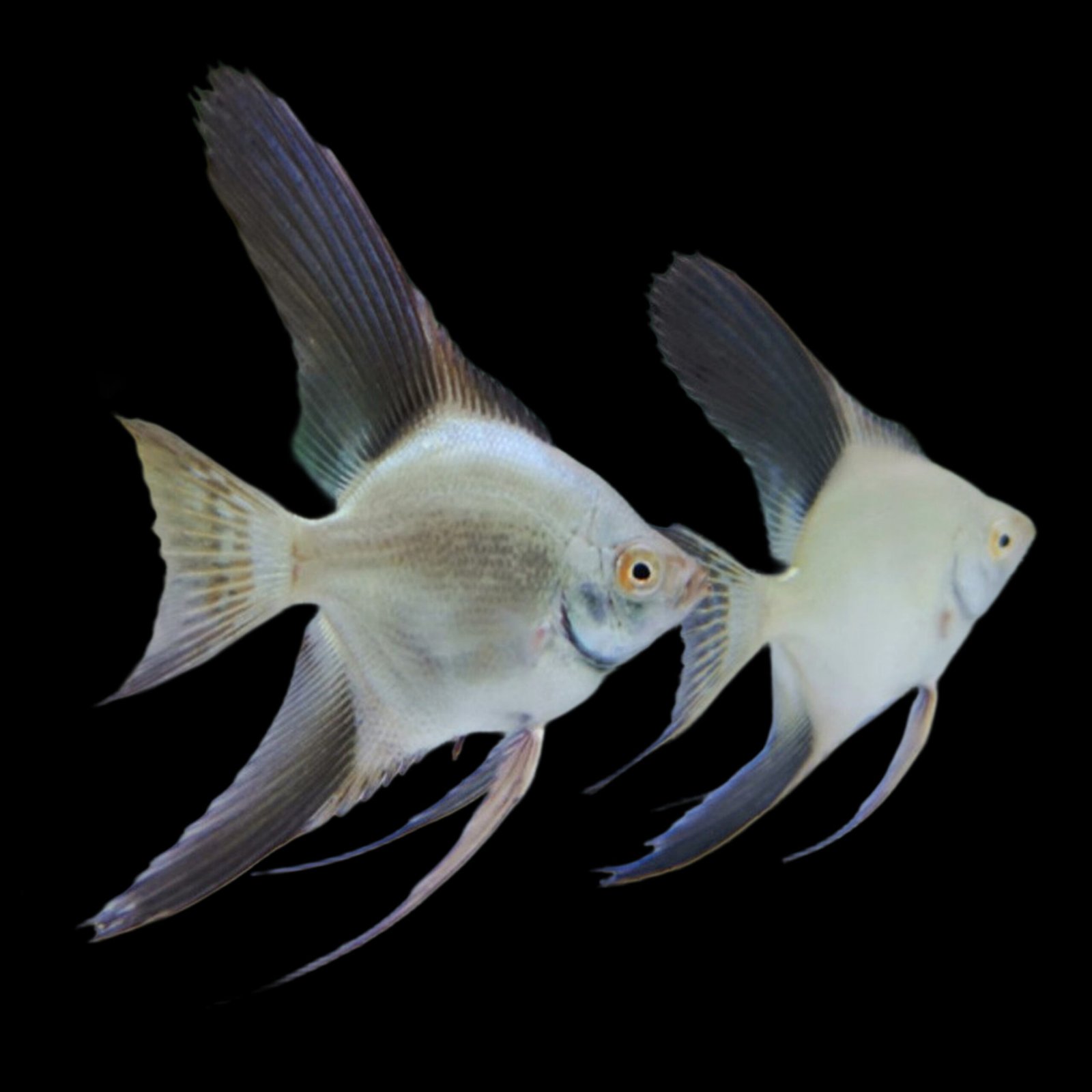 The Bulgarian Seal Point Angelfish (BSP) is one of the most elegant and rare angelfish morphs, known for its icy white body and dark-tipped fins. Its unique seal-point contrast makes it a highly prized variety among hobbyists and an eye-catching centerpiece in planted aquariums