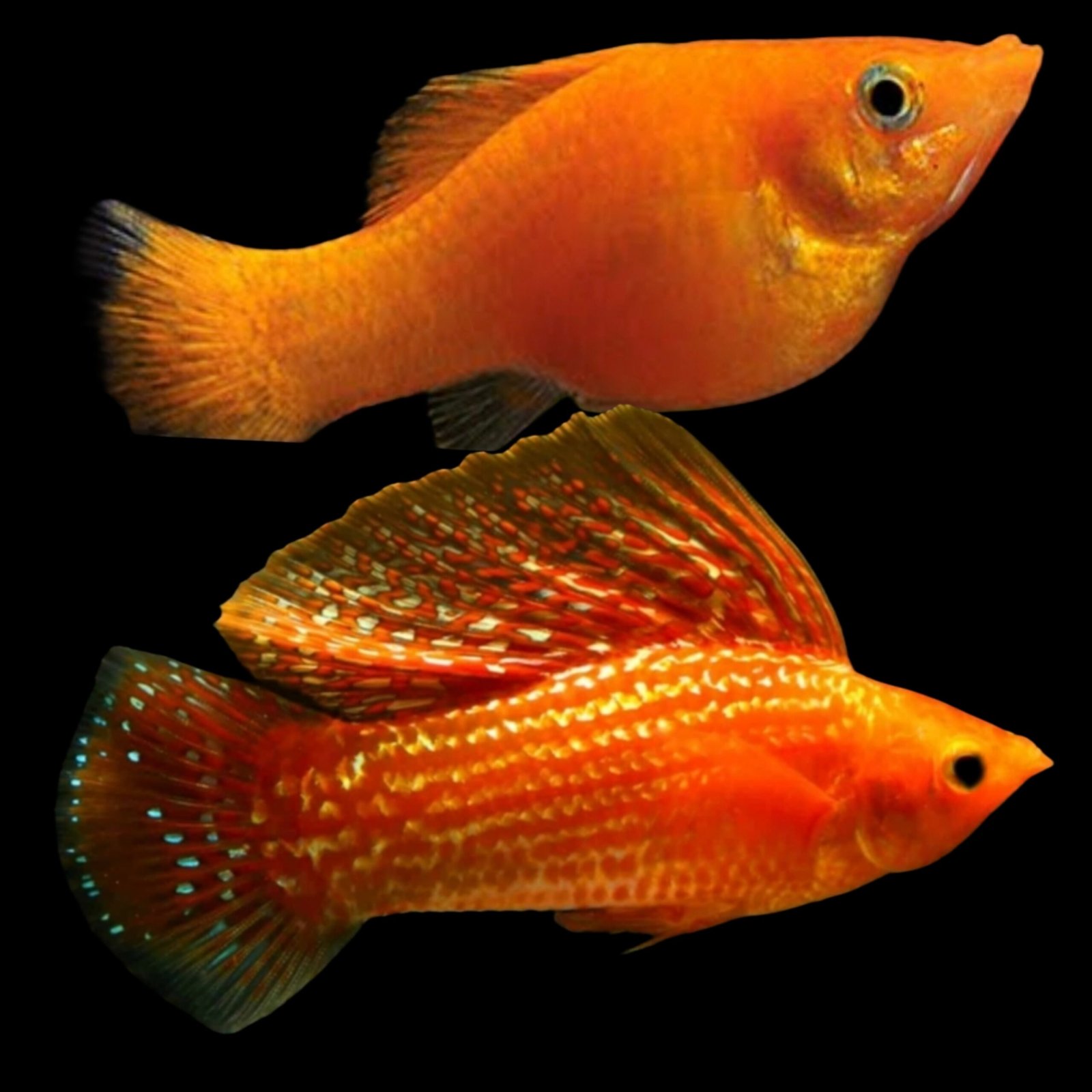 Come in many colors and varieties (Black Molly, Sailfin Molly, Dalmatian Molly, Balloon Molly, Gold Dust Molly, etc.).
