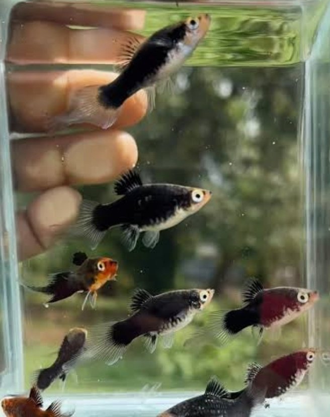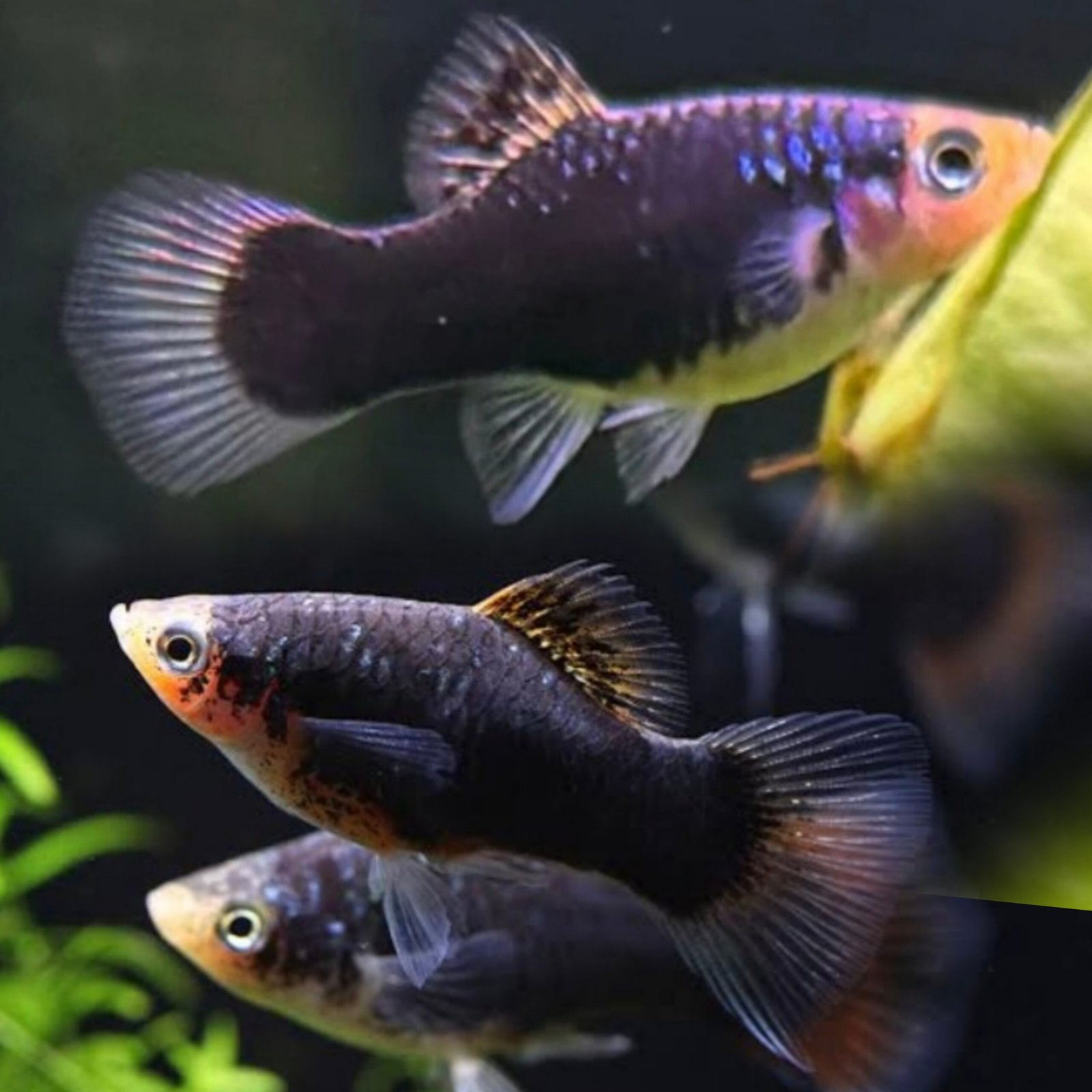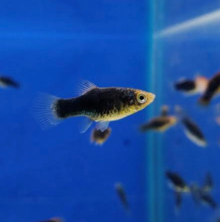 Body Shape: Typical short, rounded body of platies with a fan-shaped caudal fin.