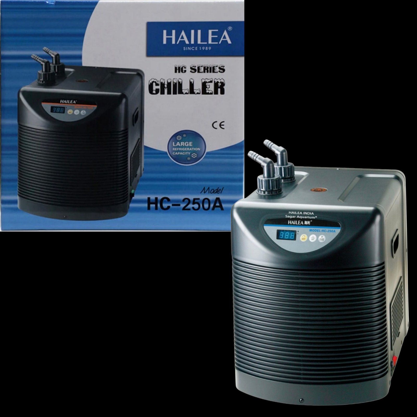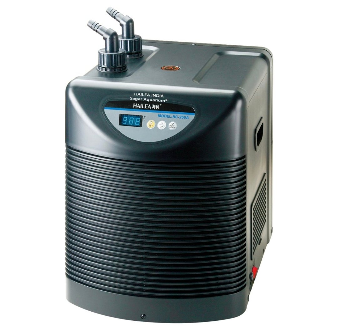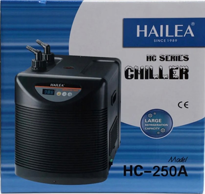 The Hailea HC250A Chiller Filter 2200L is a high-capacity aquarium chiller and filtration system designed for large freshwater and marine aquariums. It combines powerful cooling with efficient filtration to maintain stable water conditions, ensuring a healthy and balanced environment for fish, plants, and other aquatic life.