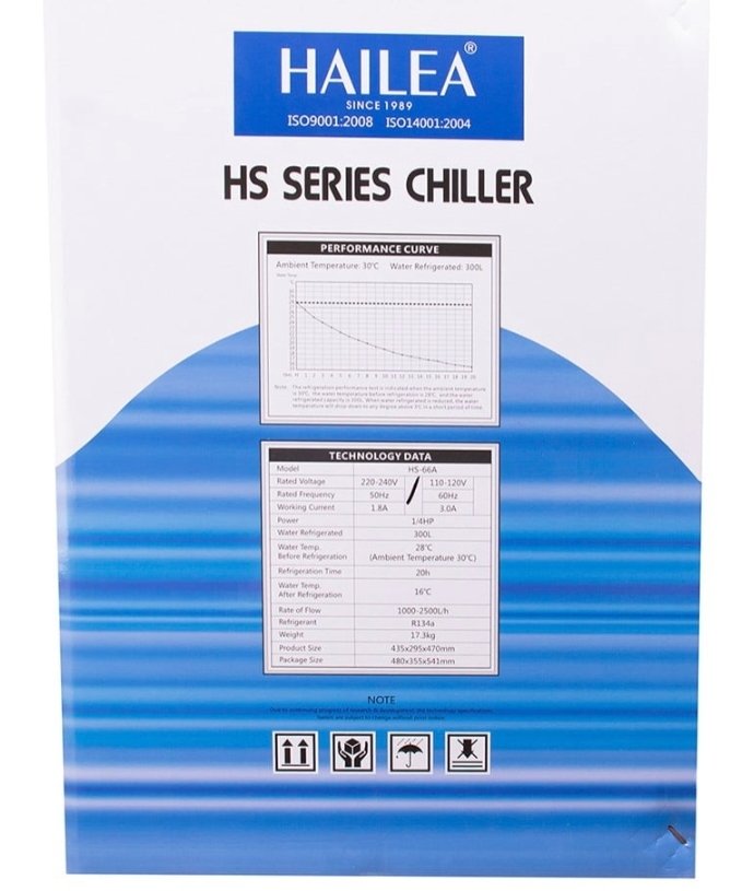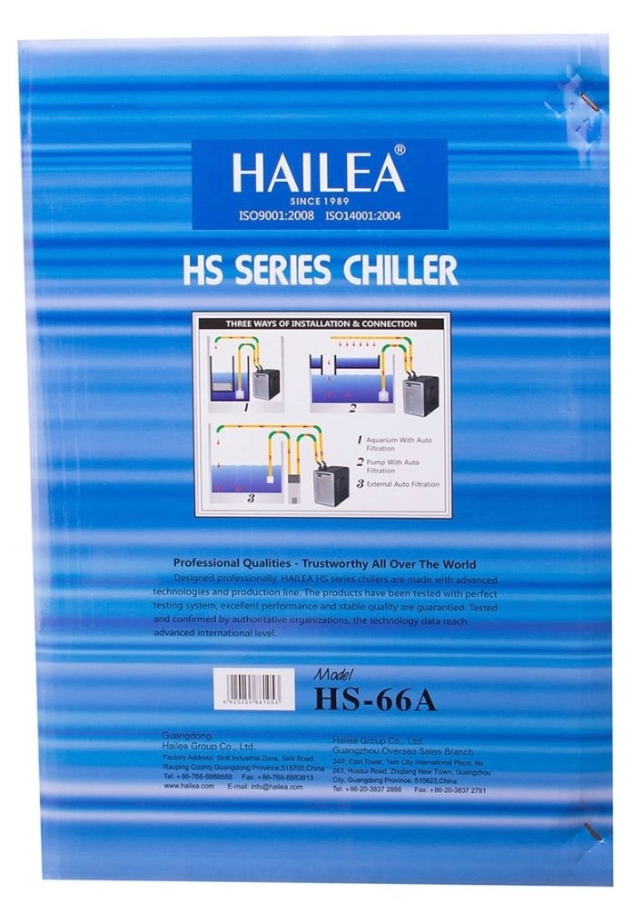 The Hailea HS66A Chiller Filter 2500L is a high-capacity aquarium chiller and filtration system designed for very large freshwater and marine aquariums. It combines efficient temperature control with powerful filtration to maintain optimal water conditions for fish, plants, and other aquatic life.