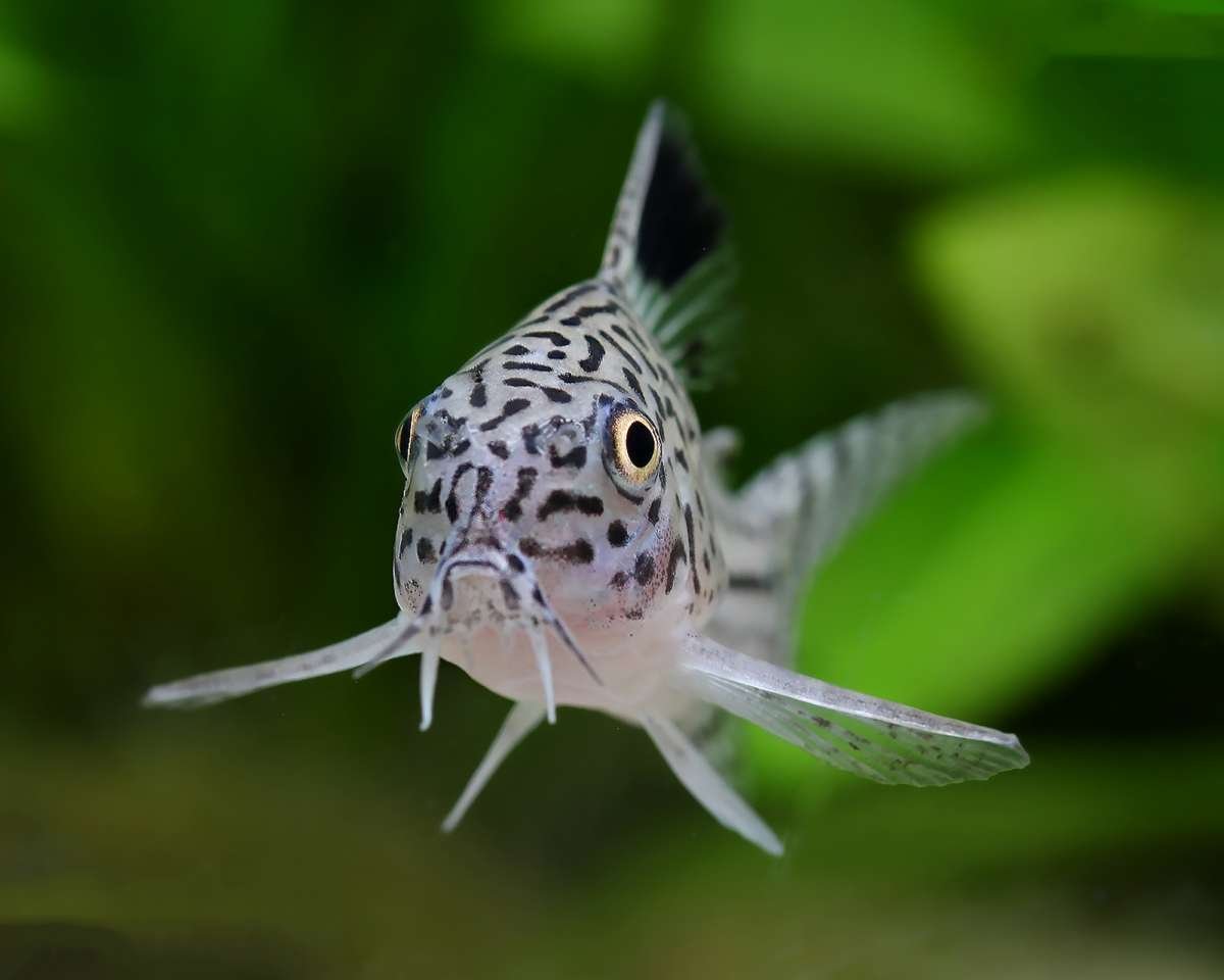The Leopard Cory Catfish is a peaceful and active bottom-dweller, perfect for community freshwater aquariums.