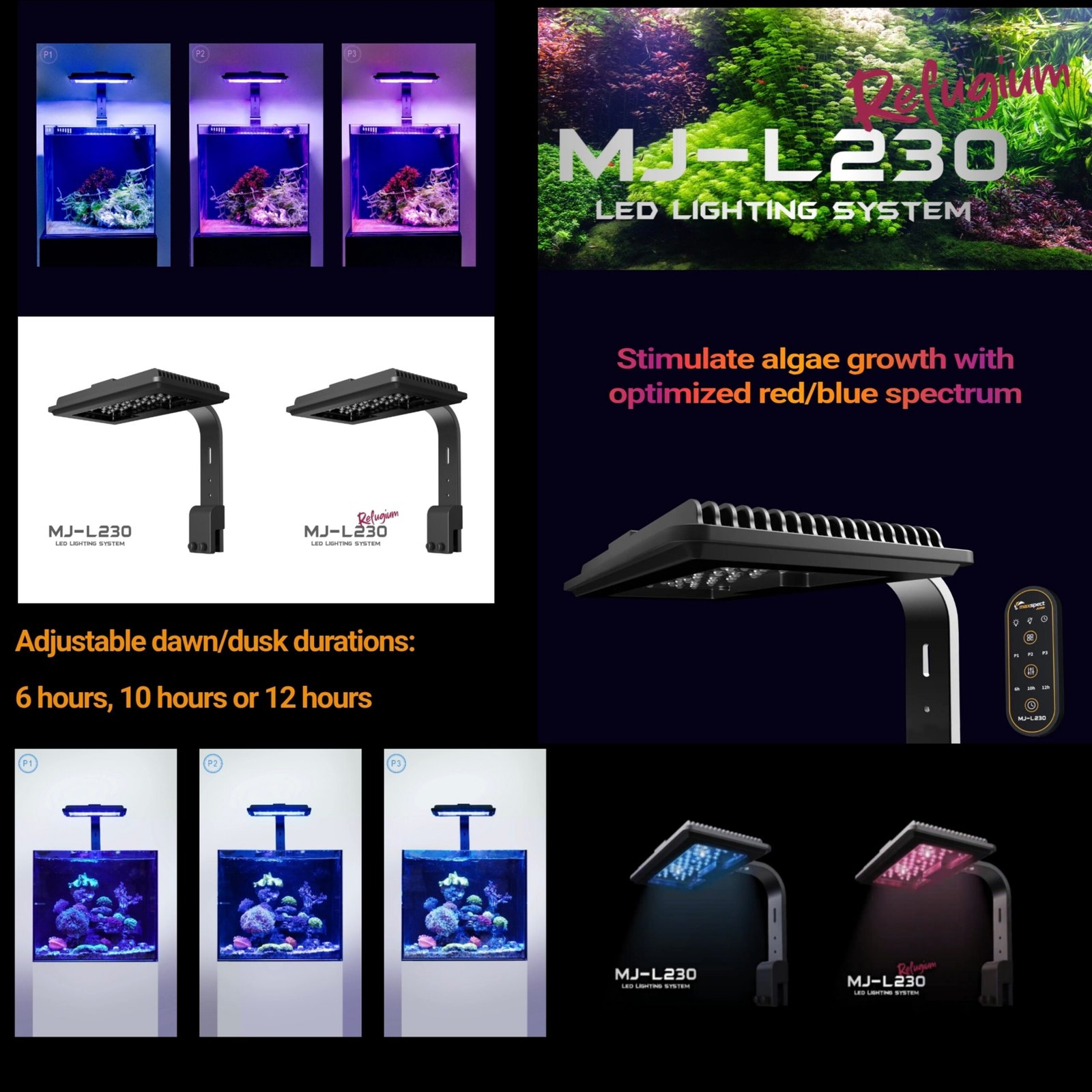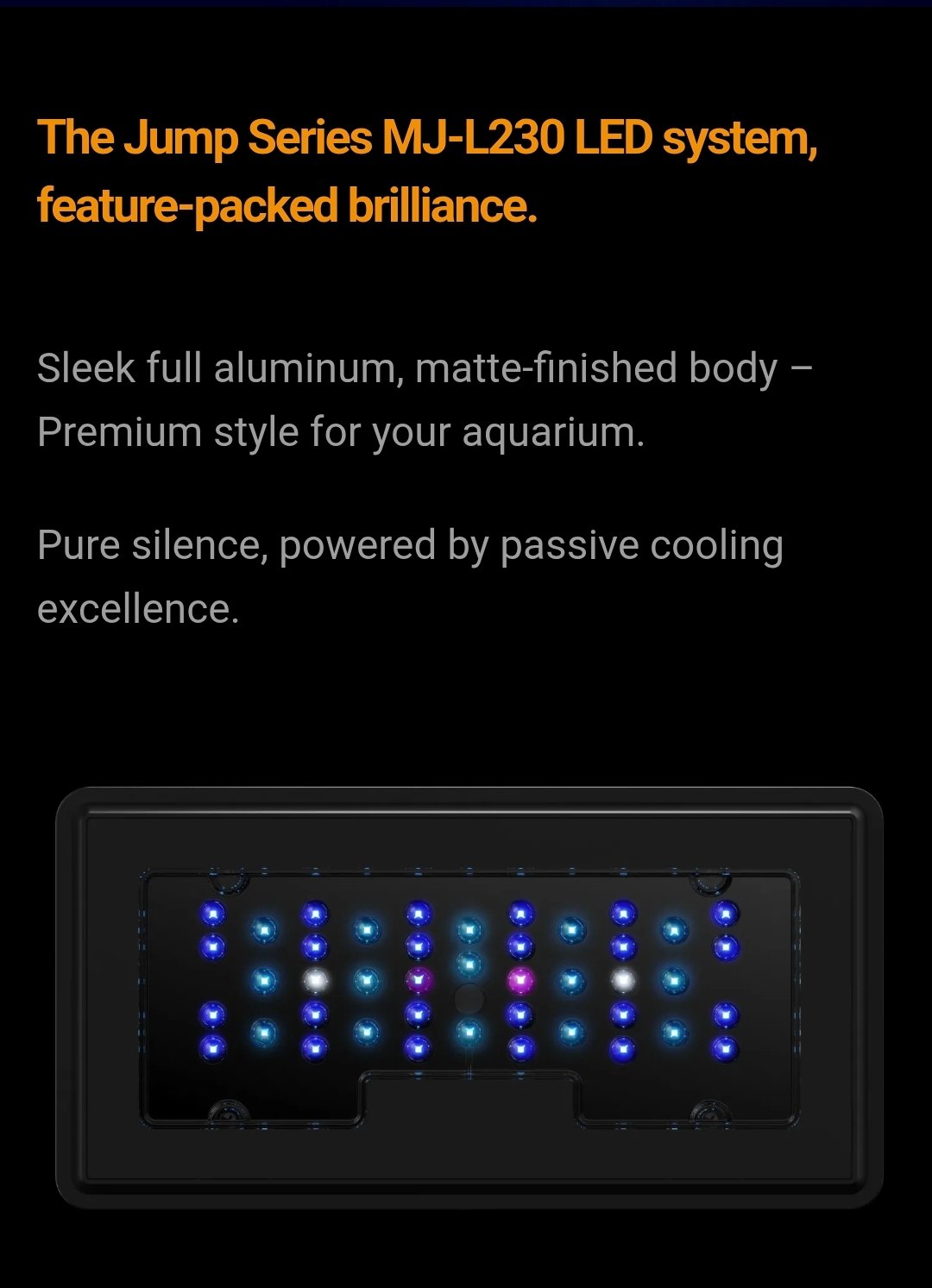 The MJ-L230R offers a stunning RGB spectrum that brings out the best colors in both fish and plants. Its combination of efficiency, durability, and beauty makes it an excellent choice for aquarists who want their aquarium to look lively, natural, and colorful.