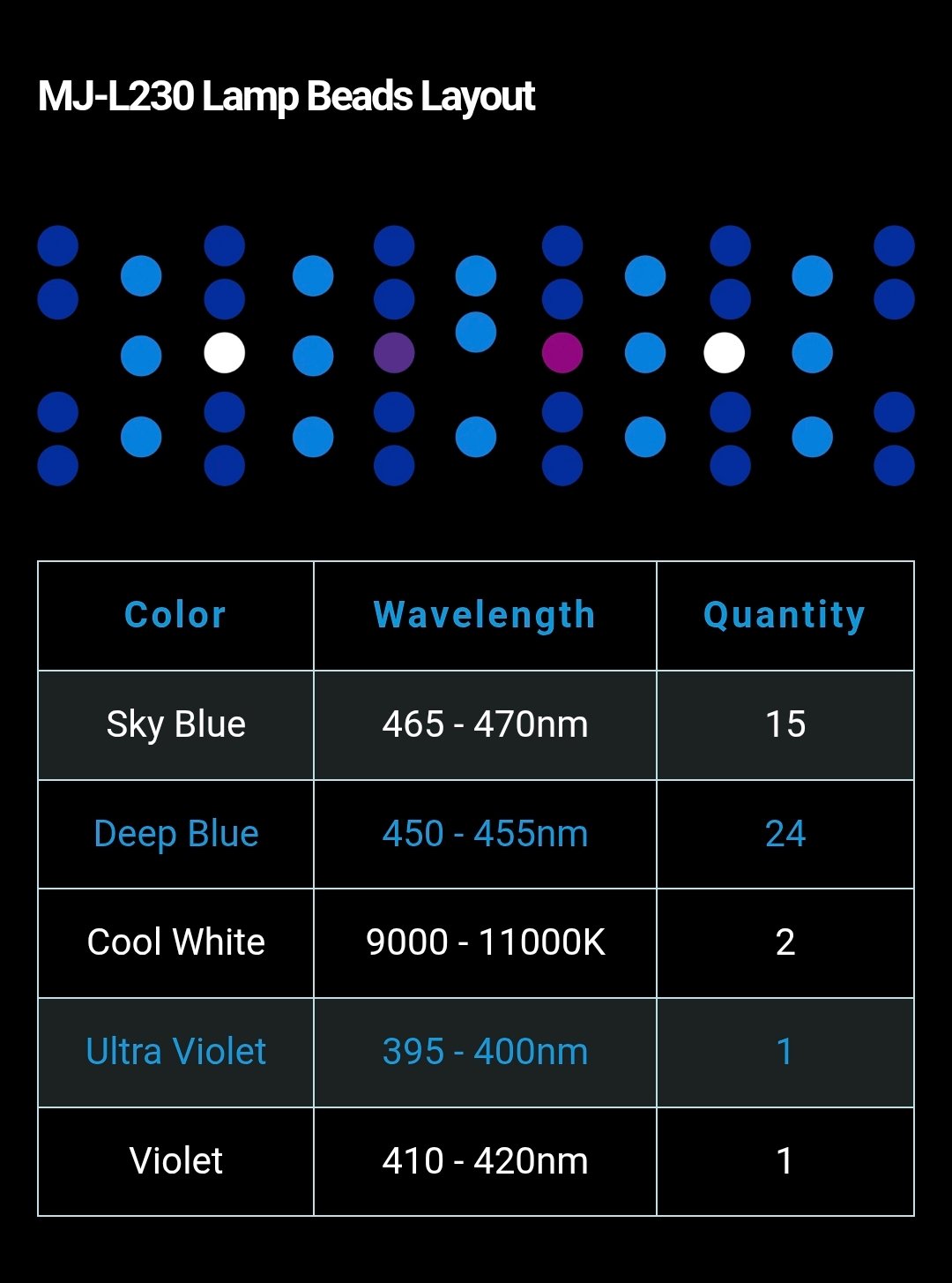 ✅ RGB Spectrum – Specially tuned to enhance fish coloration and improve the visual appeal of aquariums.