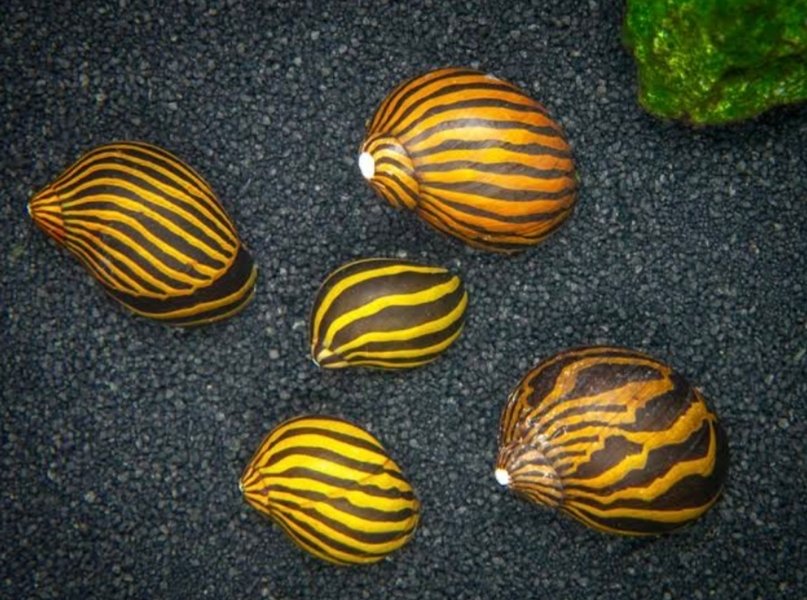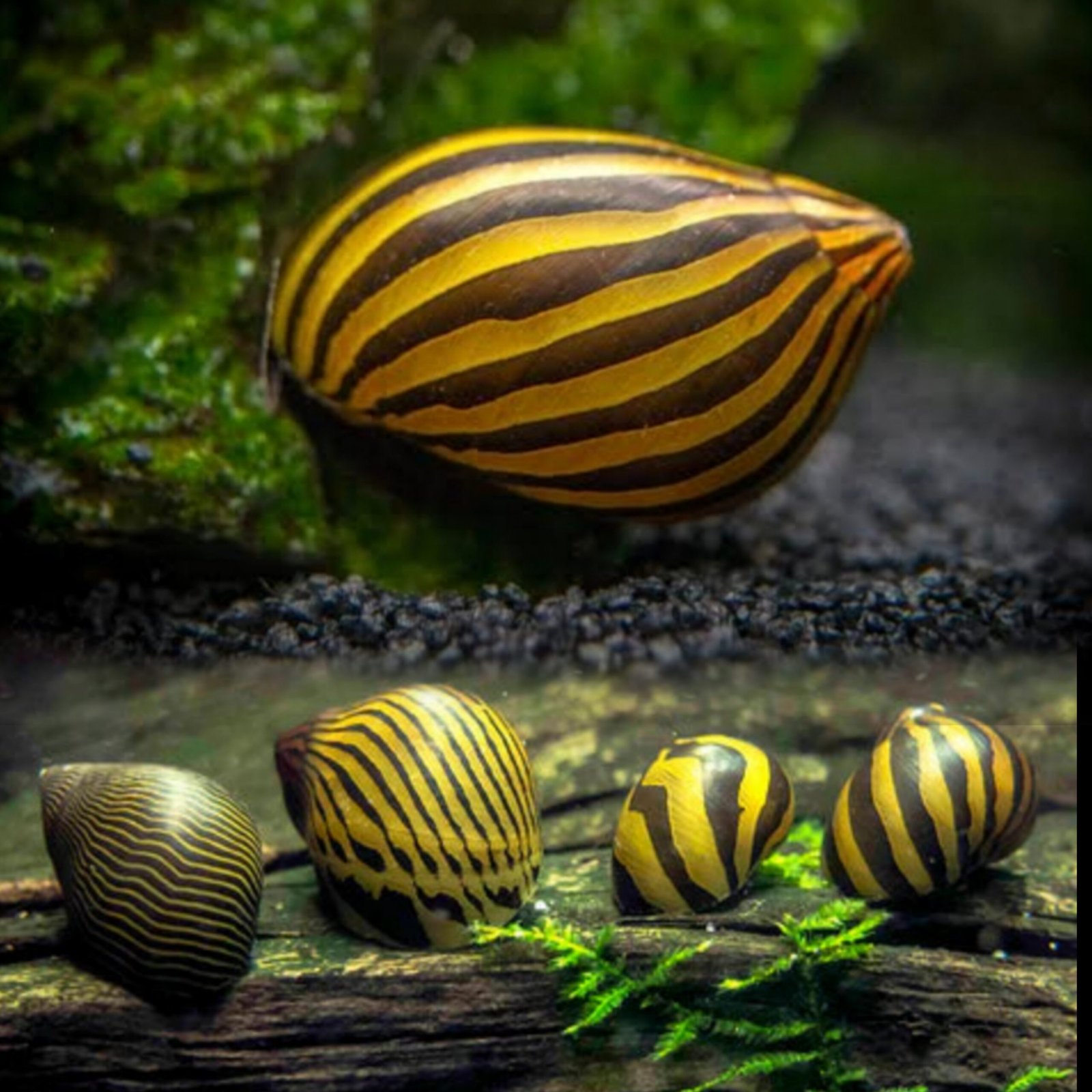 Decor: Rocks, driftwood, and live plants for algae growth.