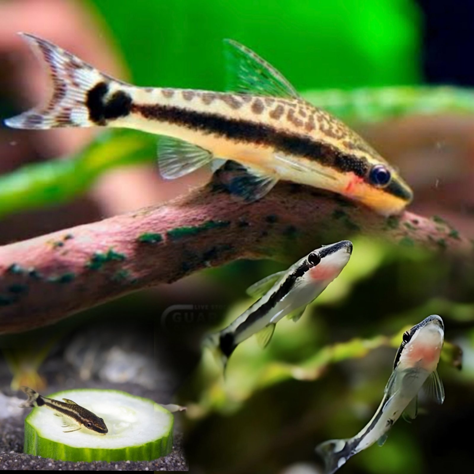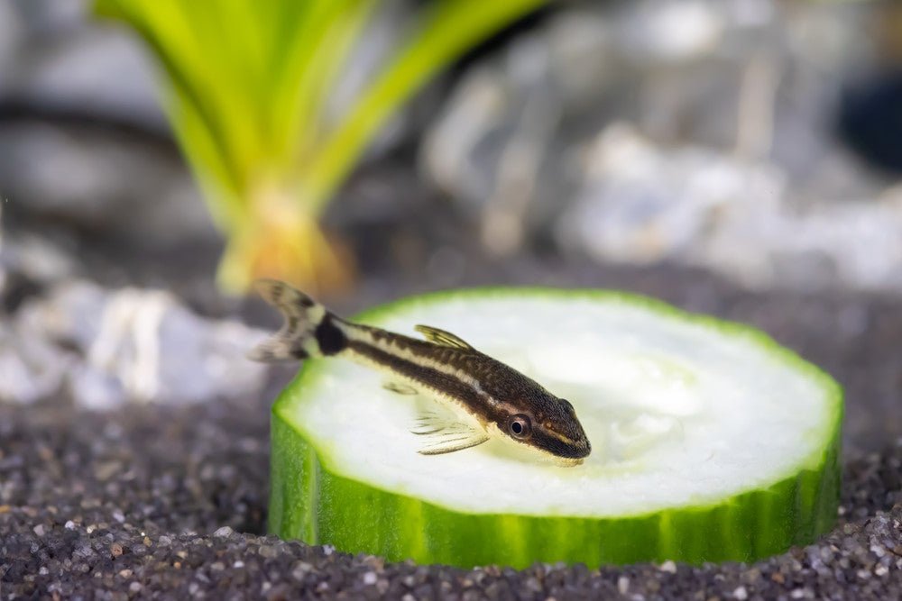 • Diet: Natural algae, biofilm, spirulina wafers, blanched zucchini, cucumber, spinach, peas.