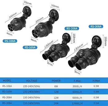 The RS108A Wave Maker is a compact and efficient aquarium circulation pump designed to simulate natural water movement, improve oxygen exchange, and prevent dead spots in your tank. Ideal for both freshwater and marine setups, it ensures a healthier and more dynamic aquatic environment.