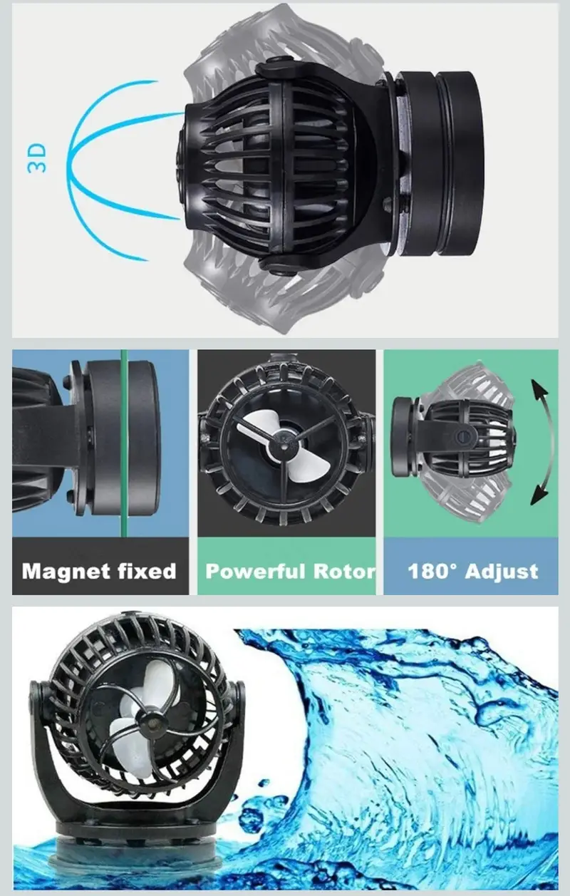 Its adjustable head allows flexible positioning to direct water flow where it’s needed most, while the energy-efficient motor delivers strong circulation with low noise. Perfect for small to medium aquariums, this wave maker supports the growth and well-being of fish, corals, and plants.