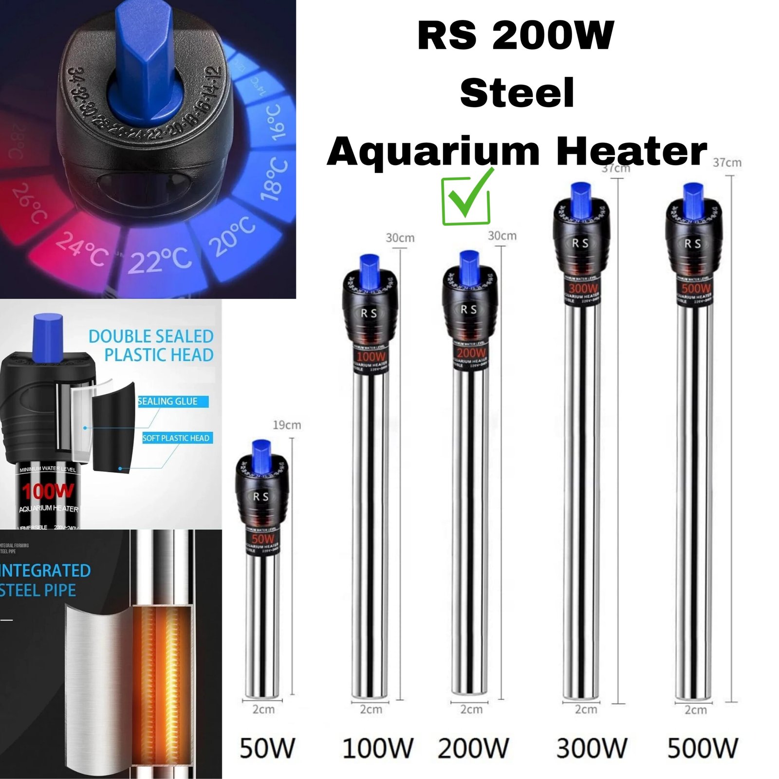The RS 200W Steel Heater offers durability, reliability, and efficient heating for medium to large aquariums. Its stainless steel design ensures long-term use without rust or breakage, making it a trusted choice for hobbyists who want a safe and consistent heating solution