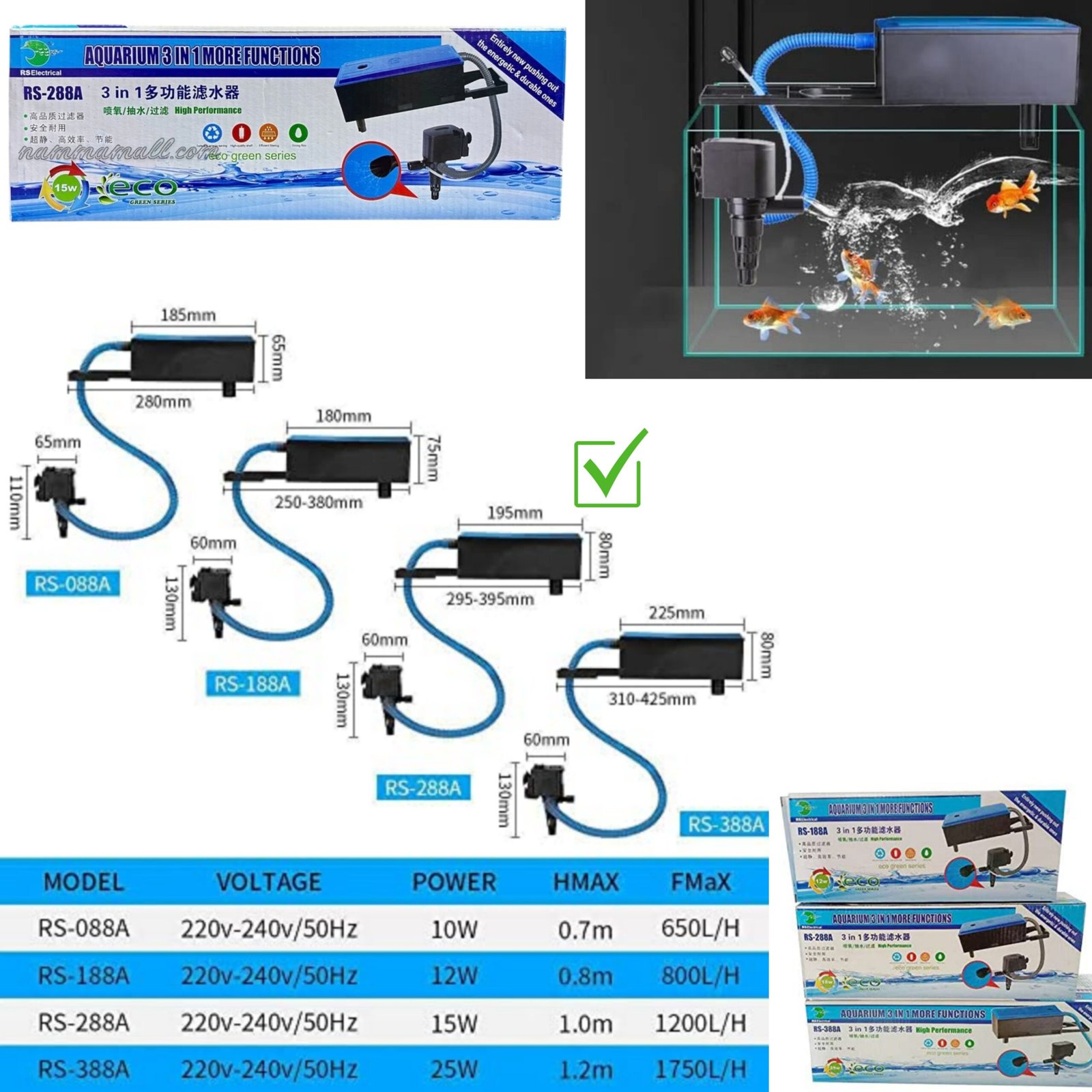 The RS-288A is a reliable, budget-friendly top filter ideal for hobbyists who want strong filtration, easy maintenance, and customizable media options. Its powerful flow ensures water clarity, oxygenation, and a healthy environment for both freshwater and planted aquariums.