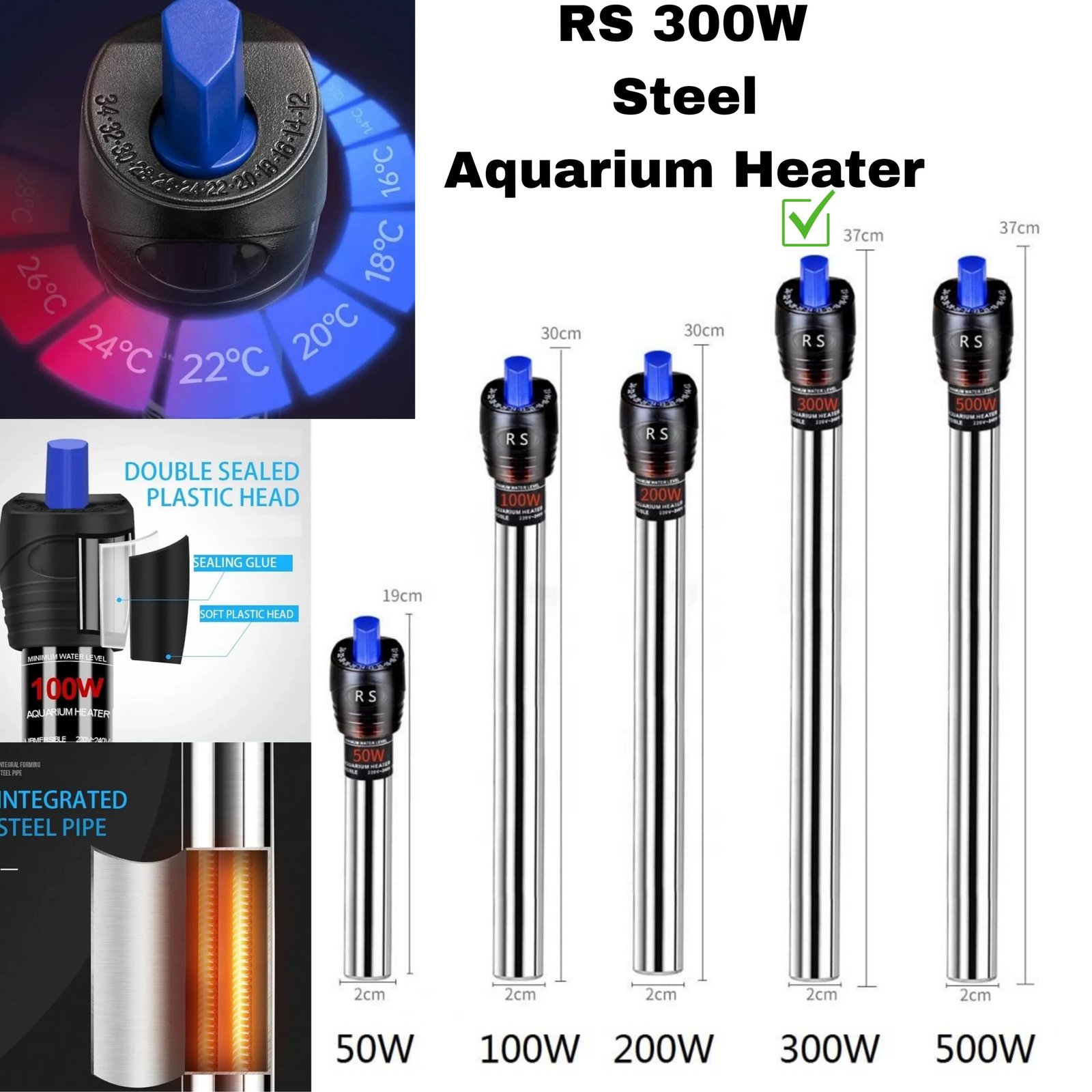 The RS 300W Steel Heater is the ultimate choice for large aquarium owners who need powerful, reliable, and long-lasting heating. Its stainless steel body ensures durability, while its stable heat output makes it ideal for delicate species and large community setups.