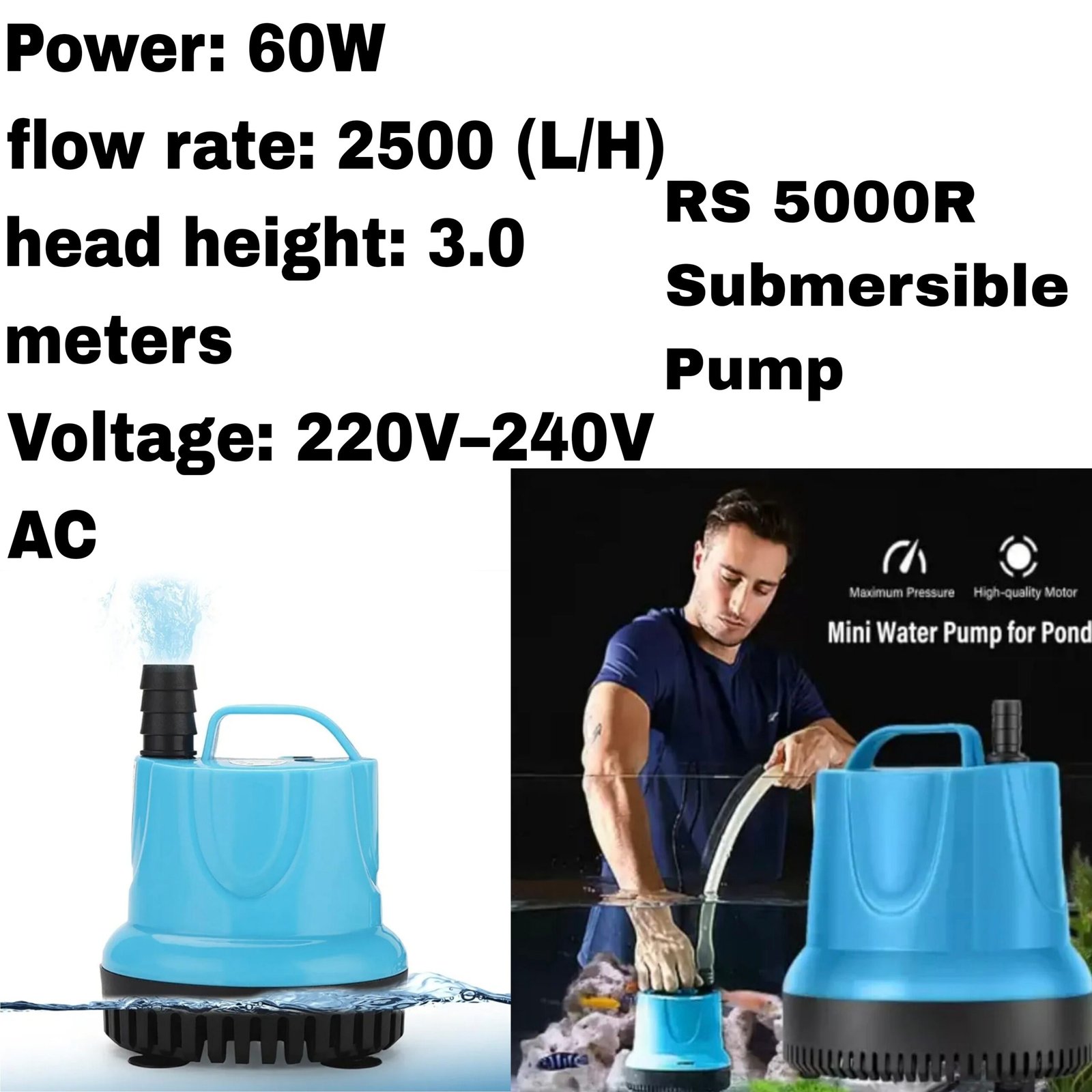 (KY1) RS 5000R Submersible Pump (60W & 2500 L/h)
