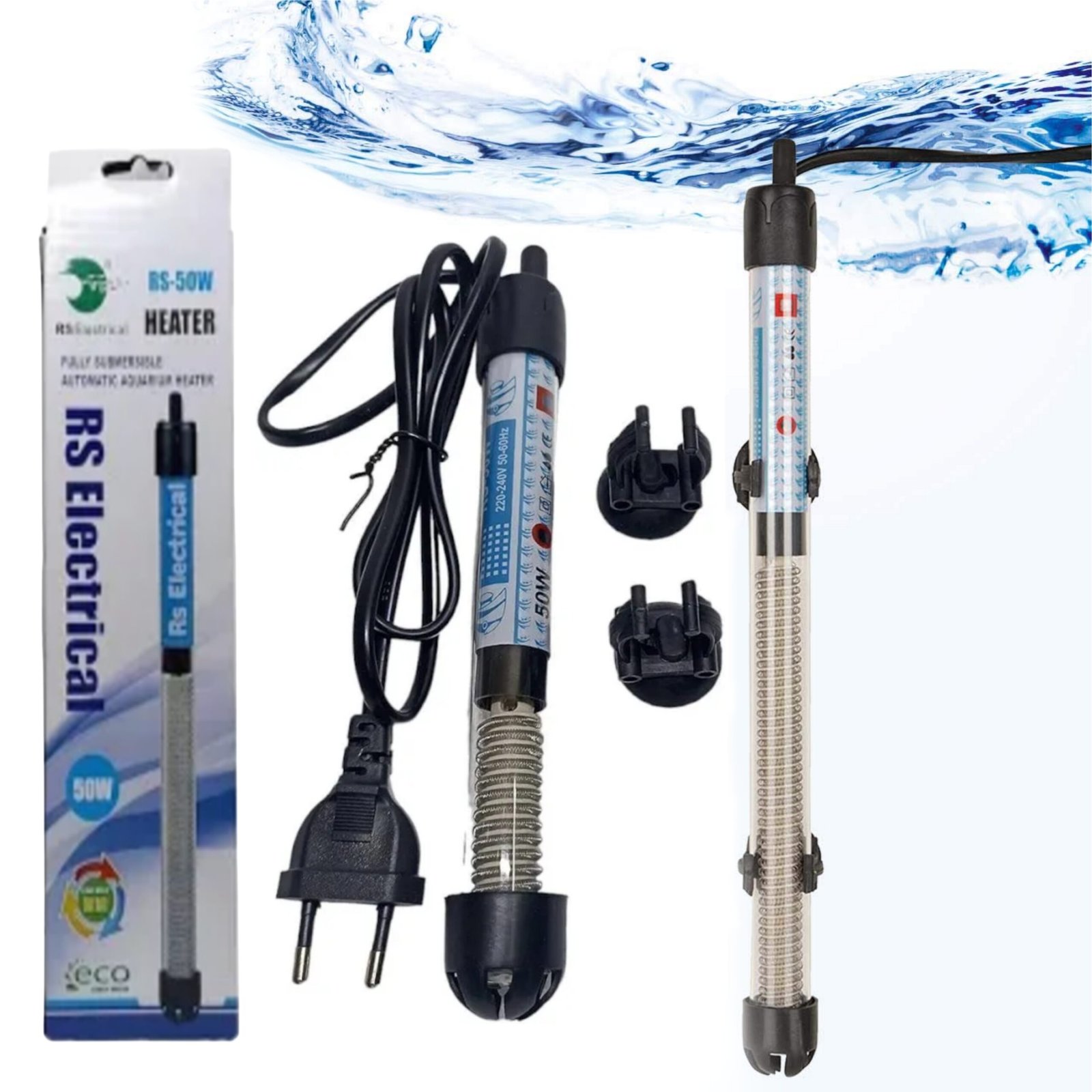 The RS 50W Aquarium Heater is a compact, reliable, and fully submersible heater designed for small to medium aquariums. Built with an adjustable thermostat and a durable glass body, it provides consistent and accurate heating, ensuring a healthy and stable aquatic environment for fish, shrimp, and plants. Perfect for beginner hobbyists and community tanks.