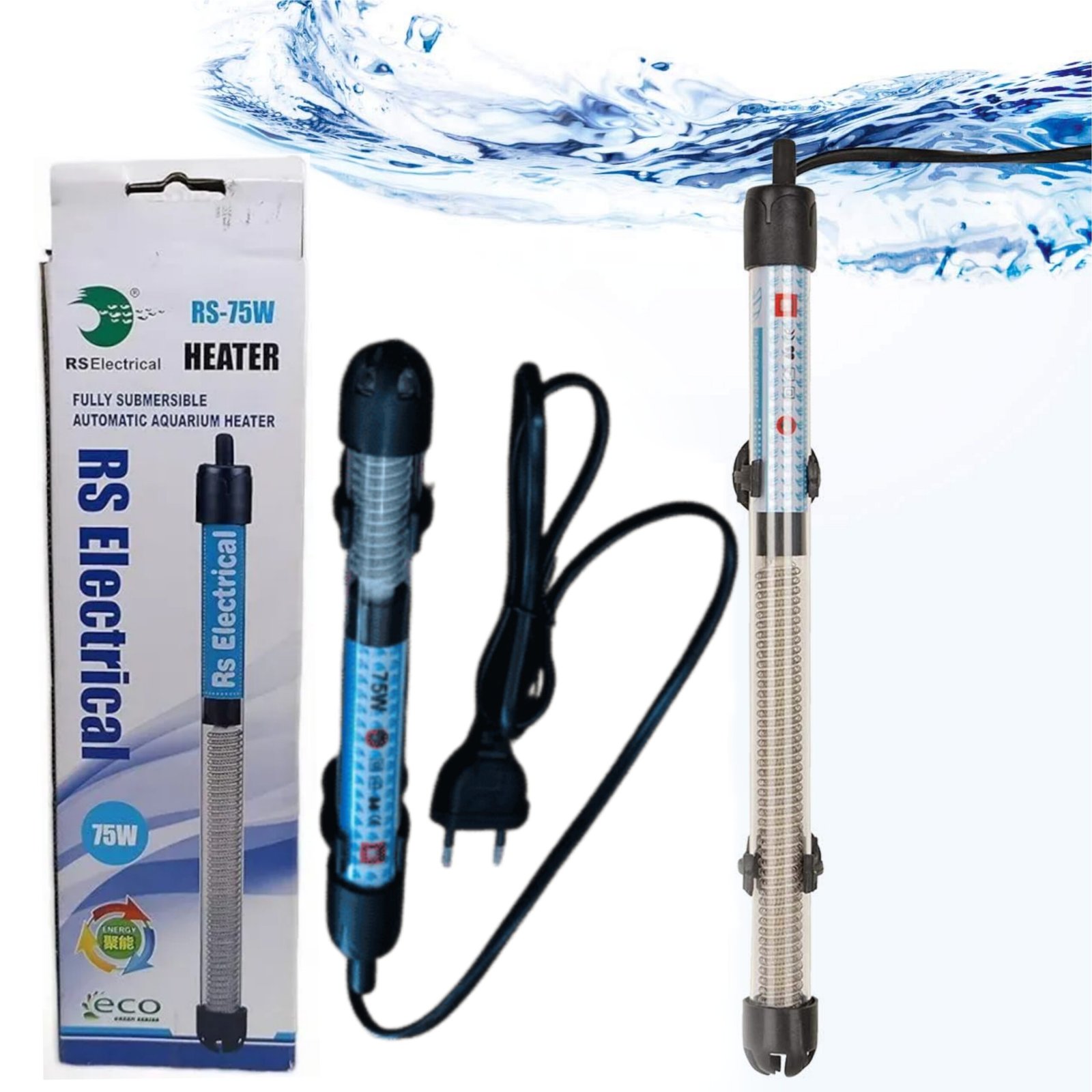 The RS 75W Aquarium Heater is a compact and efficient submersible heater designed to maintain stable water temperatures in aquariums. With its durable glass construction and adjustable thermostat, this heater is perfect for medium-sized tanks, ensuring a safe and comfortable habitat for tropical fish, shrimp, and aquatic plants.