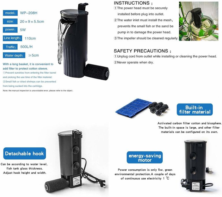 ⚠️ Not suitable as the only filter for large or messy fish like Goldfish, Oscars, or Arowana (can be used as an extra filter).