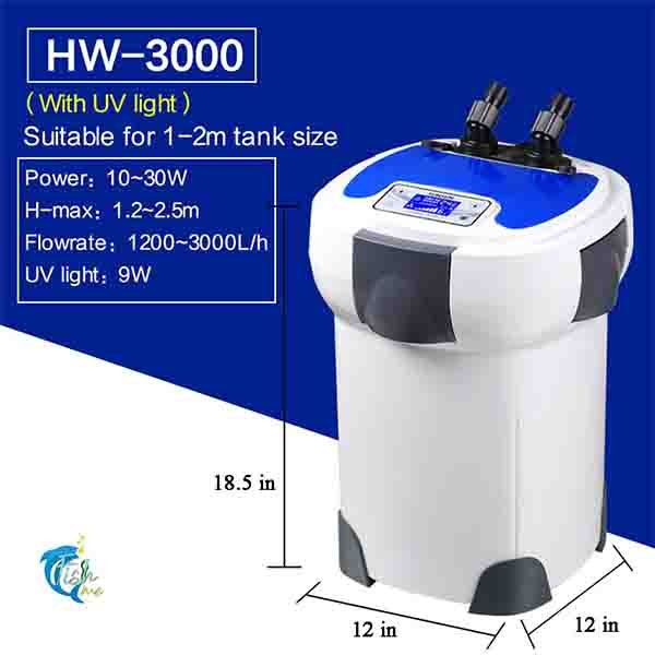 The SunSun HW-3000 Canister Filter is a high-performance external filter designed for aquariums up to 600 litres. It offers multi-stage filtration, a built-in 9W UV sterilizer, and a user-friendly setup, making it ideal for large freshwater and marine tanks.
