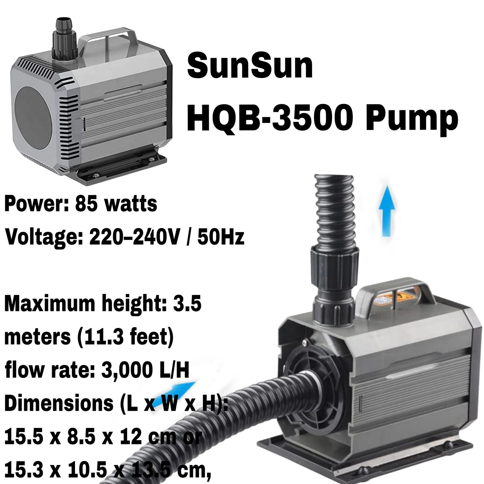 The SunSun HQB-3500 Pump is a reliable, energy-efficient, and quiet solution for medium-to-large aquariums, ponds, and hydroponic systems. With its strong circulation, durable construction, and efficient performance, it ensures a well-oxygenated and healthy aquatic environment.
