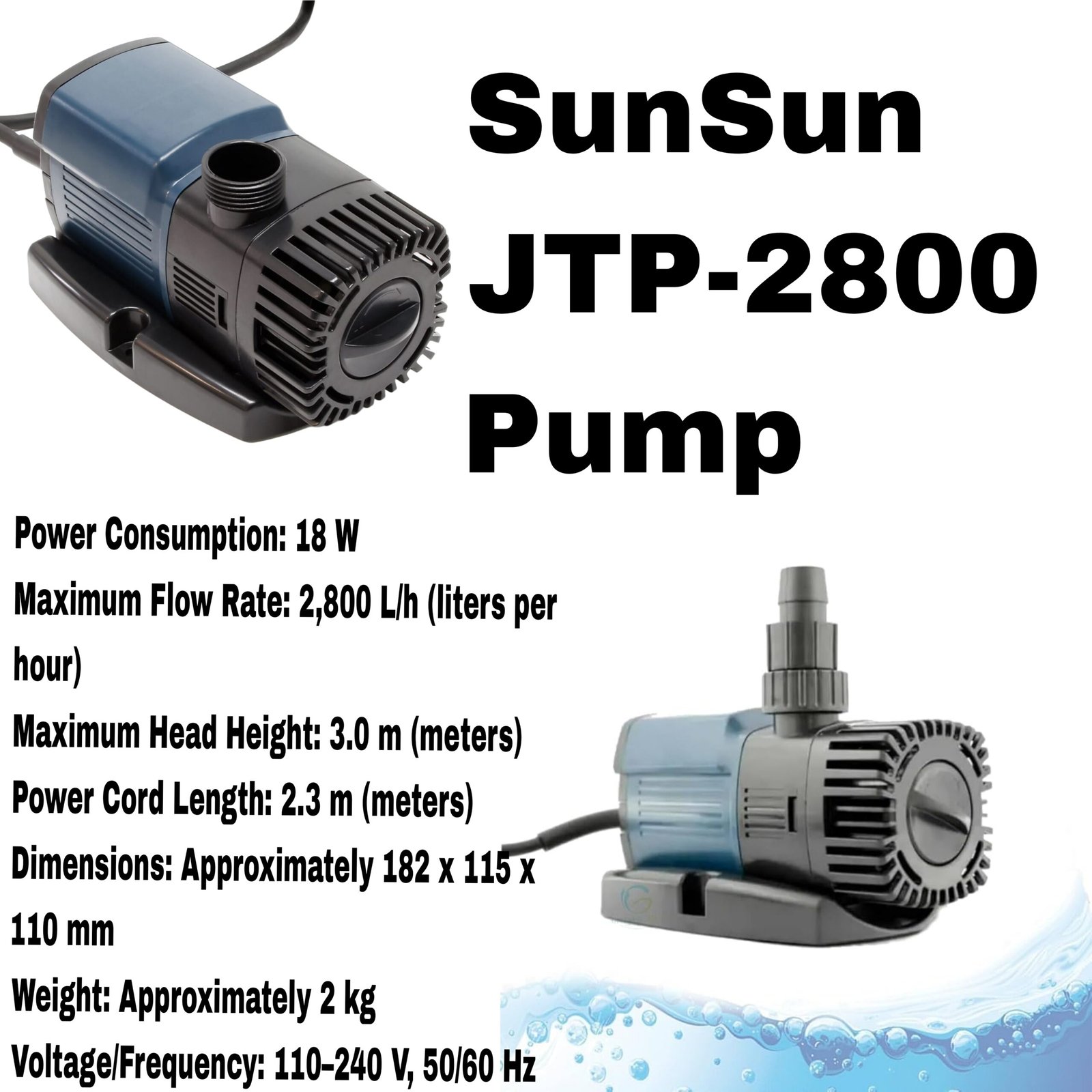 The SunSun JTP-2800 Pump is a reliable and energy-efficient submersible water pump designed for medium to large aquariums, ponds, fountains, and hydroponic systems. With its powerful motor and stable water output, it enhances circulation, supports filtration, and improves oxygen exchange, ensuring a healthy aquatic environment. Quiet in operation and built for long-term use, this pump is a versatile choice for both freshwater and marine applications.
