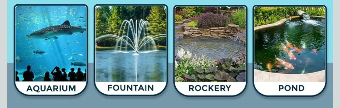 Medium ponds, fountains, waterfalls, and hydroponic systems.