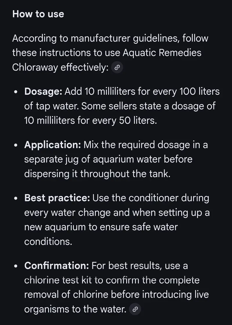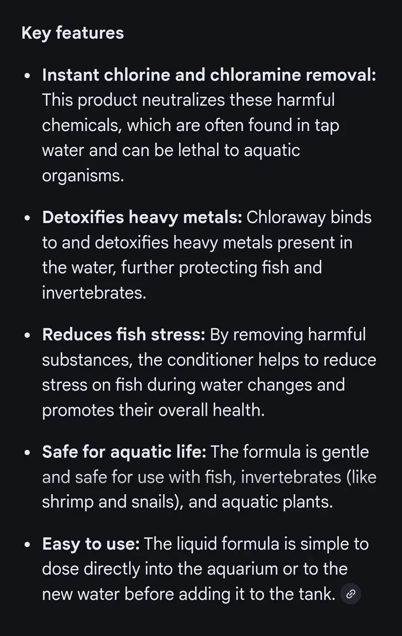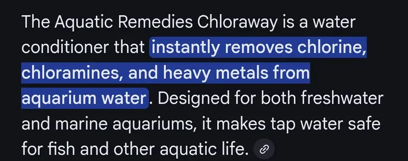 Use: Makes tap water safe by removing chlorine and binding heavy metals